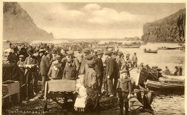Myndin er tekin í Vestmannaeyjum einhverntíma í upphafi 20. aldar. Myndin er fengin frá Heimaslóð.